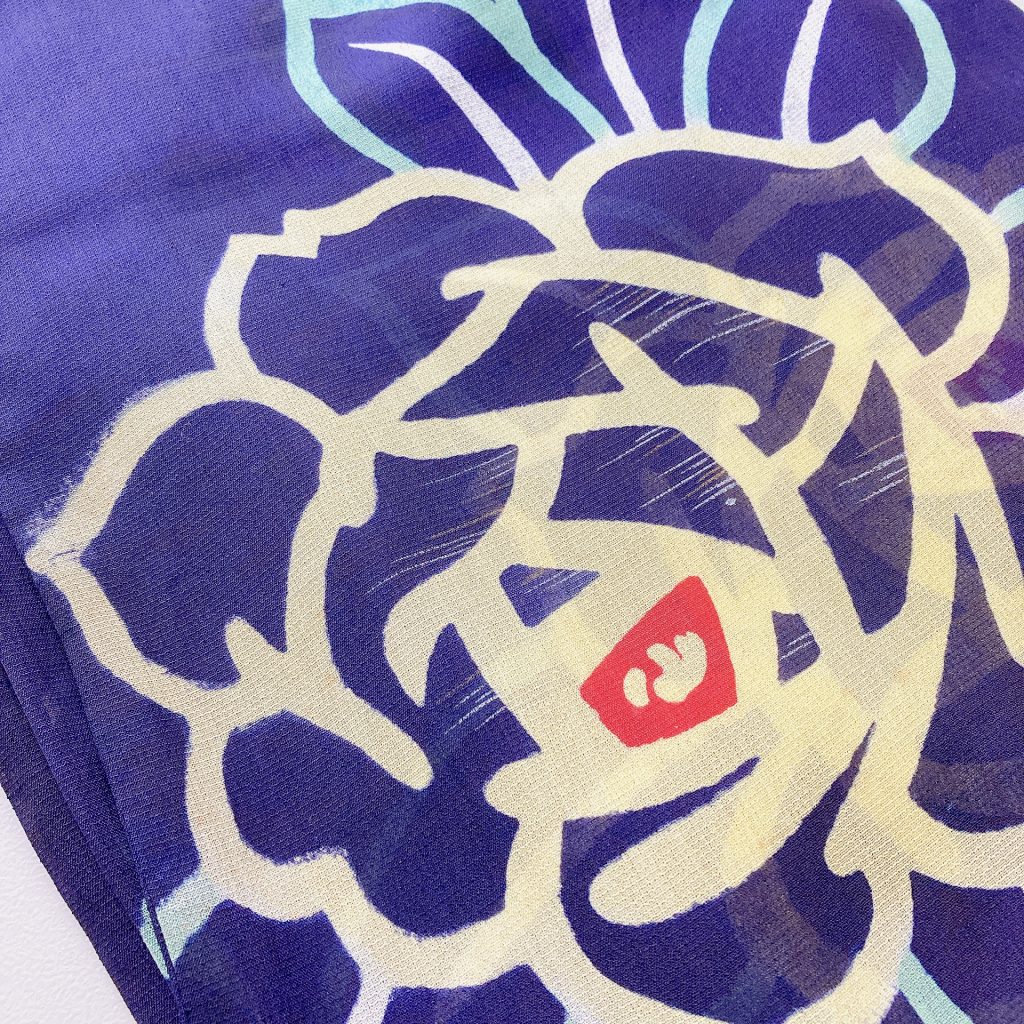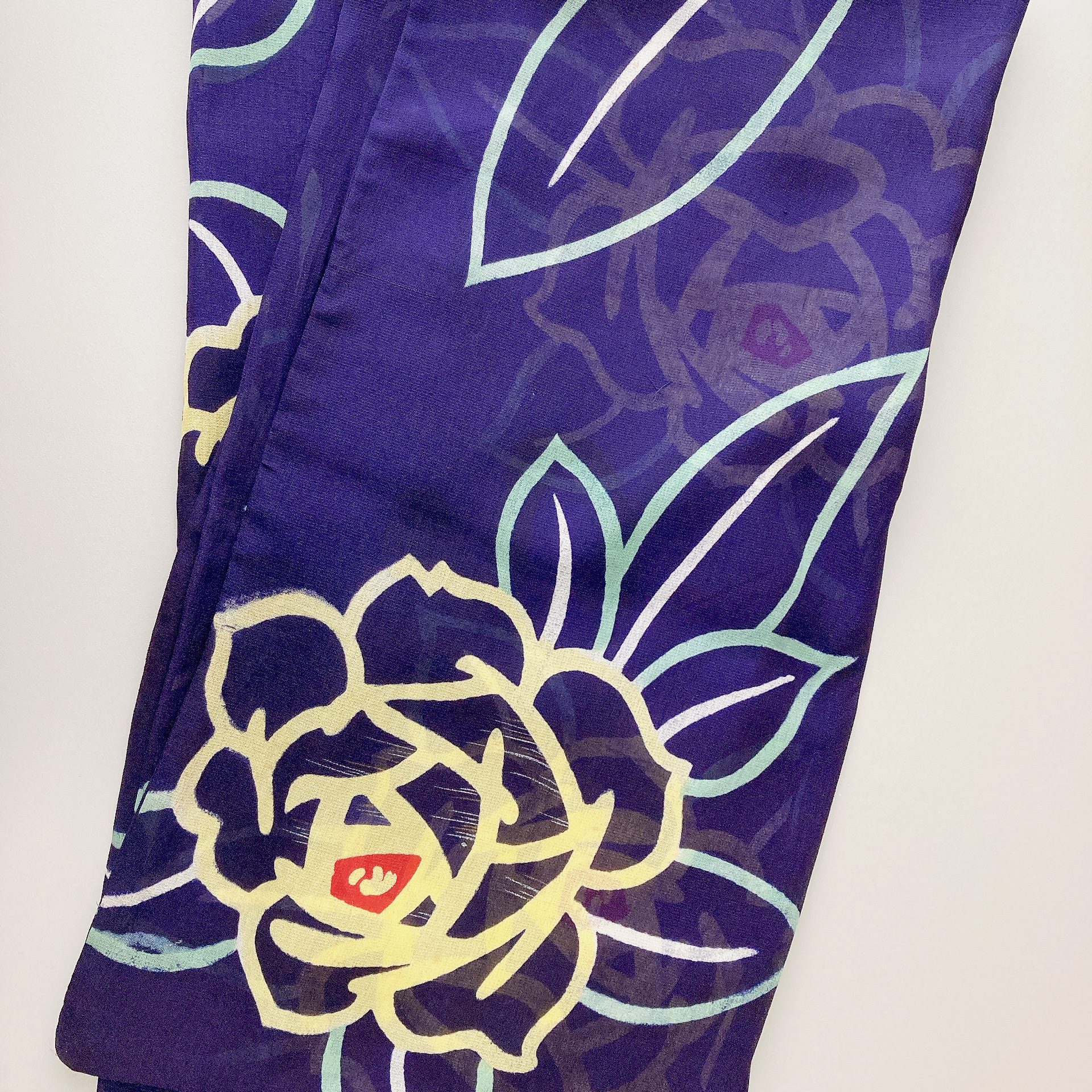 濃紺に黄色いバラが大胆に描かれていてとっても素敵です!
