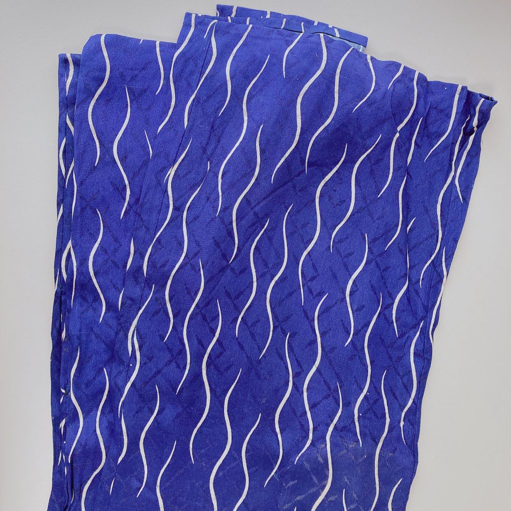 コバルトブルーがとっても鮮やかで綺麗なんです。よ~く見ると生地に透かしが入っているんですよ。波のようなうねうね柄が涼しげな雰囲気を出してくれています。はぁ~♡ステキ