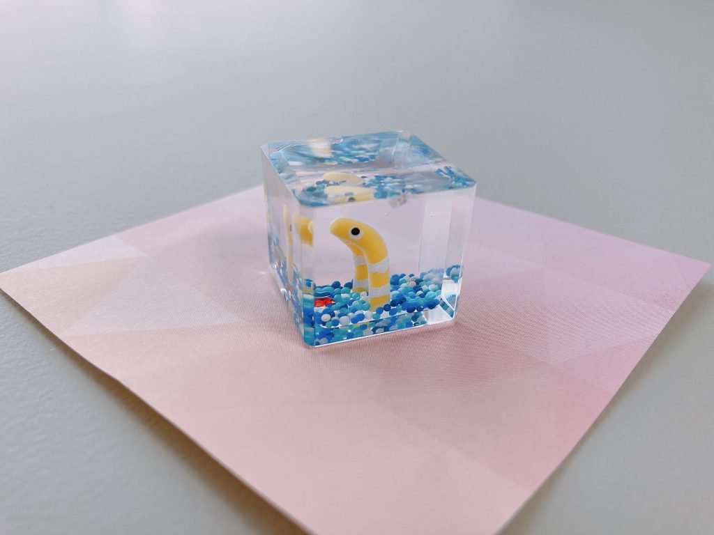 海や川の生き物が好きでして、私はこちらのチンアナゴちゃんのキューブの置物に惹かれて購入。
