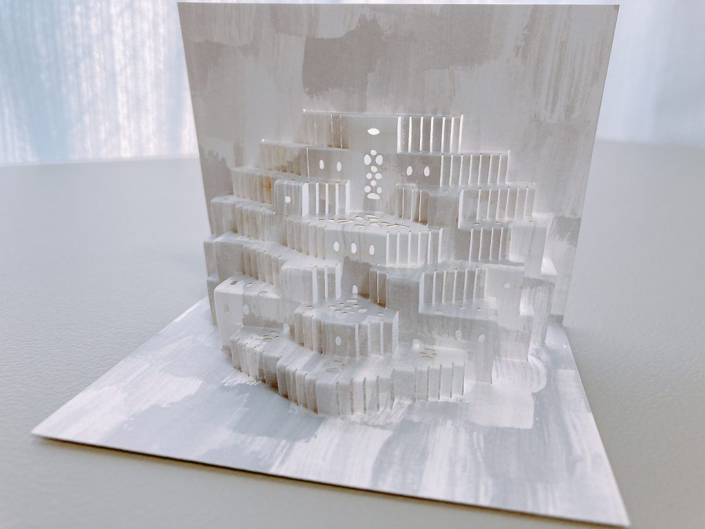 最後はこちら。「ATELIER COCO」さんのとても繊細なカード✨ライト付きでこのカードの裏側にライトを置いて点灯させると幻想的な世界が広がるというもの。夜に眺めたい。